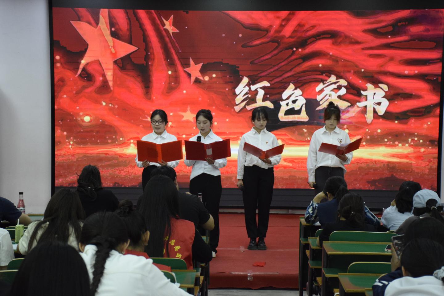 为深入学习贯彻党的二十大精神,在五四青年节到来之际,由校团委主办、艺术学院承办的“诵读红色家书·传承信仰力量”示范性主题团日,于4月25日下午在一号楼报告厅二成功举办,校团委书记王姗、各学院团总支书记及团员代表200余人参与活动。活动在庄严的团歌声中拉开序幕。200余名师生齐声高唱《光荣啊,中国共青团》,铿锵有力的旋律回响在会场。沉浸式学习环节,学前2311班的刘金花、雷佳音等4名团员演绎了革命夫妻陈觉和赵...