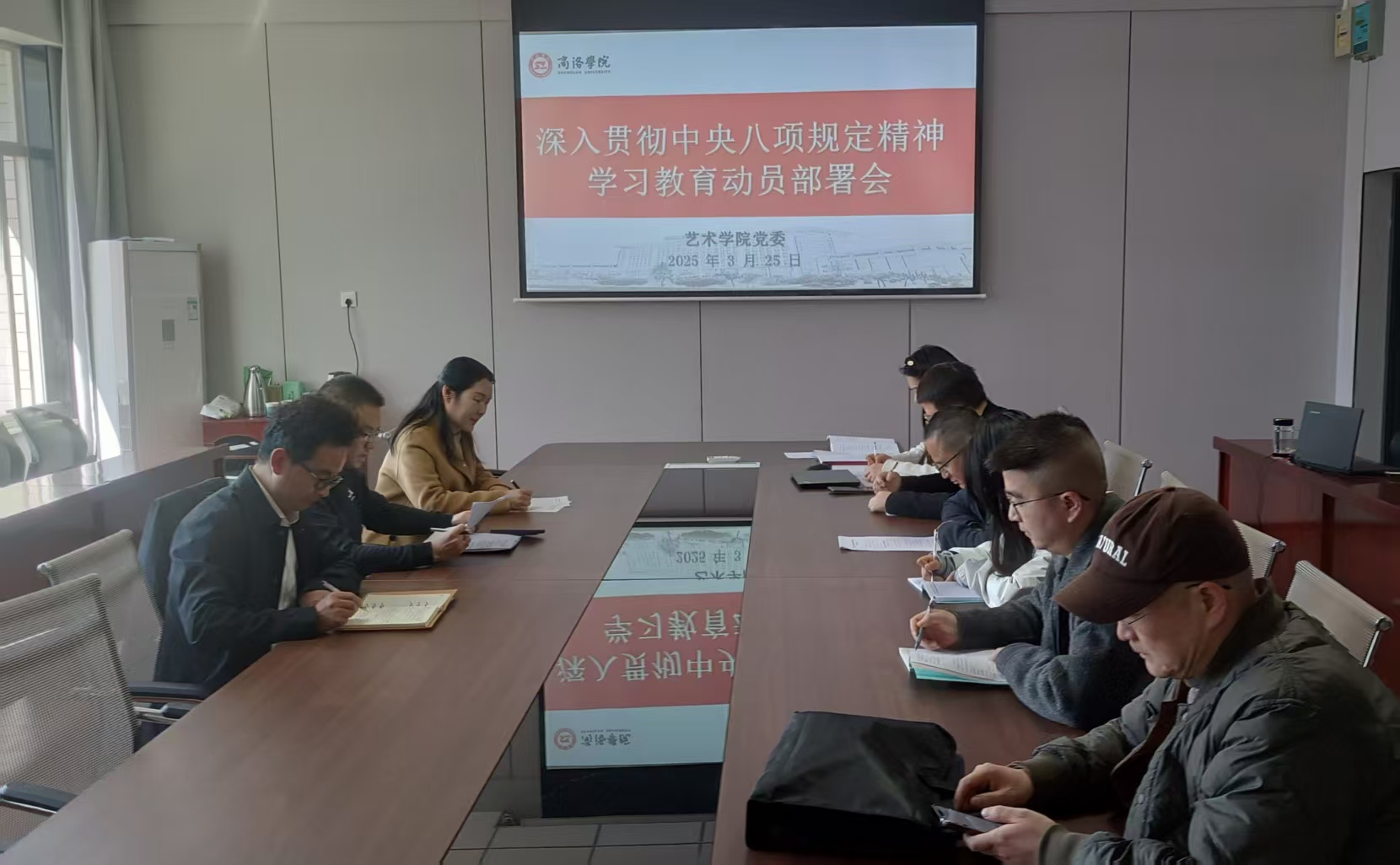 为贯彻落实党的二十届三中全会部署,巩固拓展学习贯彻习近平新时代中国特色社会主义思想主题教育成果,巩固深化党纪学习教育成果,锲而不舍落实中央八项规定精神,推进作风建设常态化长效化,根据《关于开展深入贯彻中央八项规定精神学习教育的实施方案》(商院党〔2025〕16号)文件精神,艺术学院党委于3月25日召开深入贯彻中央八项规定精神学习教育精神传达会,并针对艺术学院工作进行部署安排。会议由艺术学院党委书记廉明主...