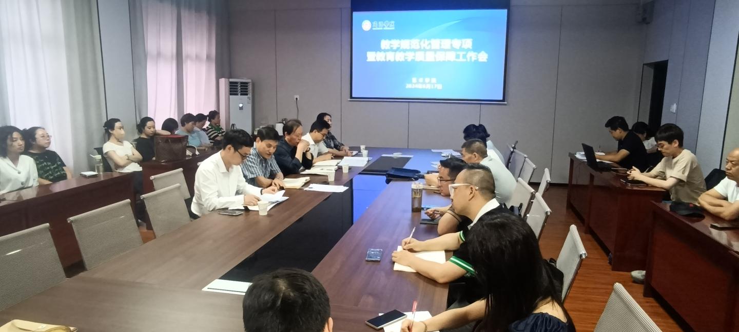 会上,黄新春从教学规范化管理专项行动开展意义、组织领导、整改举措、建立台账等方面进行部署。唐曌堃围绕考风、学风方面领学公司相关制度文件,并对科研项目申报和服务地方工作进行安排。刘志华围绕教风方面领学公司相关制度和《审核评估整改方案任务清单》,并对期末教学管理及考试相关事项进行安排。