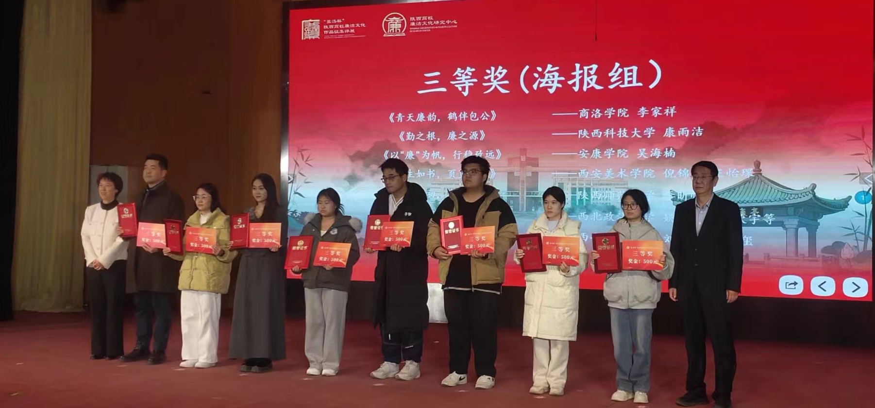 “张汤杯” 陕西高校廉洁文化作品展览活动以“廉洁润心,文化铸魂” 为核心主题,设置微视频创作、书画作品、海报设计三个参赛门类,面向陕西省各高校广泛征集优秀作品。自 2025 年 6 月启动以来,活动得到我省高校积极响应,共计收到31 所院校近 800 件参赛作品。经评审委员会严格审核、公平公正评审后,公司师生围绕公司“红心美育”特色党建品牌,凭借出色的关联创作实力斩获多项荣誉。