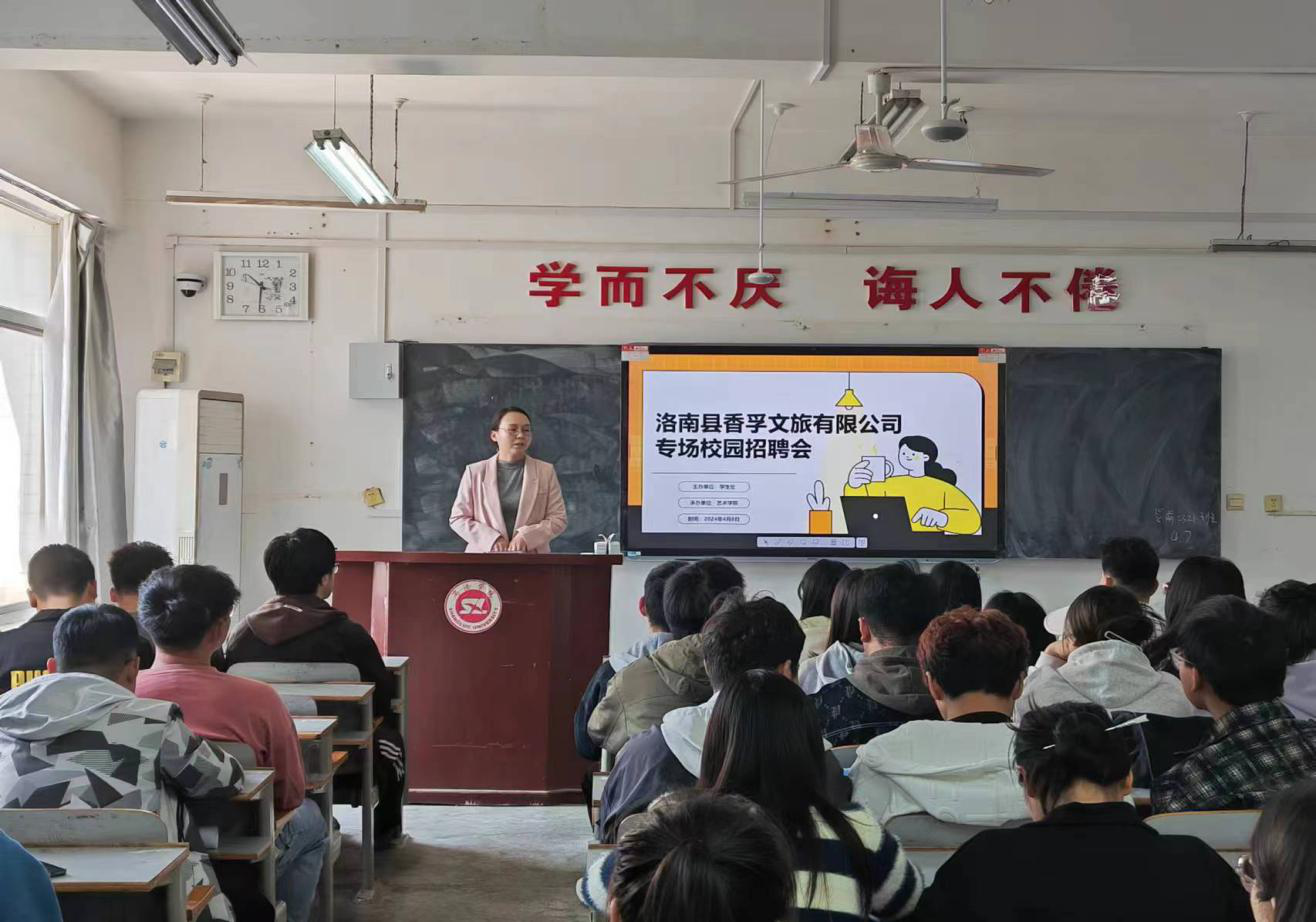 员工处处长李彦广简要介绍了公司专业办学与毕业生就业的基本情况,说明公司十分重视毕业生就业、工作成效显著,近些年来,毕业生就业去向率位居全省高校前列。洛南香孚文旅有限责任公司副总经理牟小青女士对公司的基本情况、业务运营、人才招聘等做了重点推介。经相互交流,增进了解,达成了校企合作共识。公司党委书记黄新春、经理李世鹏分别与该公司副经理牟小青签订了共建就业创业基地和实践教学基地协议并授牌。搭建双项平台,加强交流合作,将不断激发校企合作资源互惠活力、强化公司产品实践与专业人才培养,进一步推动公司音乐、美术专业更多毕业生到优秀企业实现高质量就业。