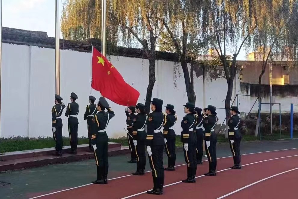上午7:10,迎着晨光,师生们列队整齐。在庄严肃穆的氛围中,主持人介绍了历史上的10月16日发生的件件大事,并宣布仪式开始。