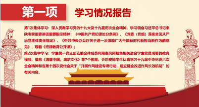 通过专题学习,把突出纪律教育的政治性、时代性、针对性贯穿一体,使党党性教育、纪律教育、警示教育和廉洁文化教育融会贯通,持续引导支部党员坚定信仰、信念与信心,严守政治纪律和政治规矩,深入领会“两个确立”、坚决做到“两个维护”,切实扛起党员的政治担当、历史担当和责任担当,积极促进清廉校园建设,助力支部党员不断自我净化、自我完善、自我革新、自我提高,以清正廉明的奋斗姿态迎接党的二十大胜利召开。