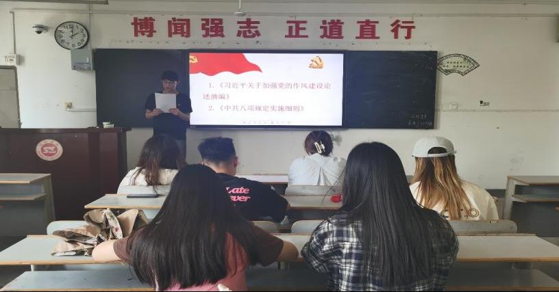 会上,李沛桐首先带领党支部党员学习《习近平关于加强党的作风建设论述摘编》的重要内容,从党的作风建设到如何持续深化纠治“四风”等方面进行了全面解读。接着吴俊霖、晏睿二位同学带领大家学习《中央八项规定实施细则》,材料中强调:中央八项规定是改进工作作风的切入口和动员令,是新时代加强党的作风建设的关键之举,全体党员要时刻保持清醒头脑,切实改进工作作风,以更加务实的态度投入到工作中。