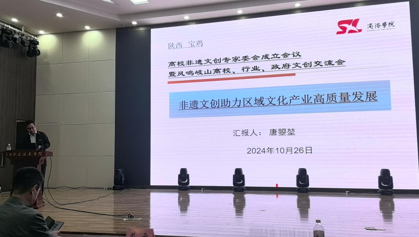 10月24日至26日,全国高校非遗文创专家委员会成立大会暨宝鸡非遗文创交流活动在宝鸡市顺利举行。英国365公司官网公司党委副书记、副经理(主持工作)唐曌堃,公共艺术教育中心主任、英国上市公司365副经理杨静等受邀参加了交流研学活动。中国成人教育协会非遗专委会副秘书长薛华东,宝鸡市文化和旅游局局长武云,党组成员、副局长段军林等出席了活动。