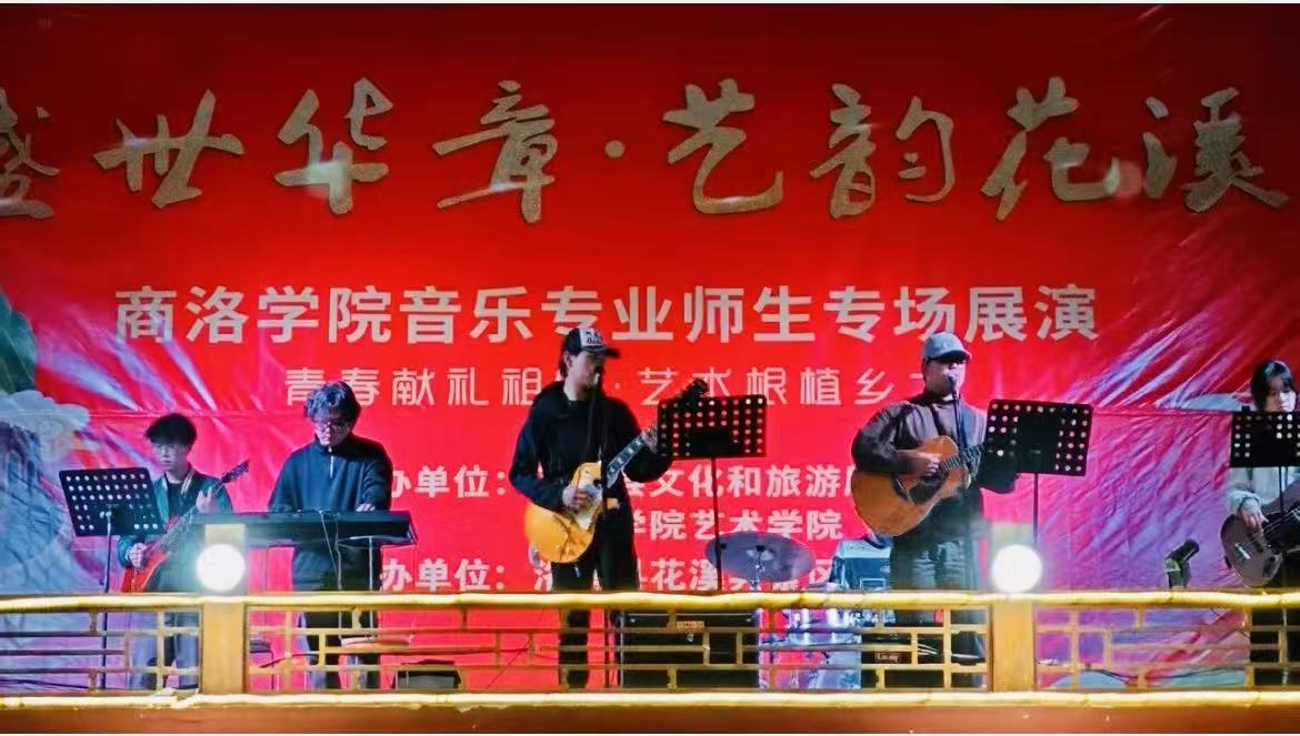 为深入推进校地融合,以高质量美育资源服务地方,10月2日晚18:30,由洛南县文化与旅游局、洛南县花溪弄景区主办,英国上市公司365音乐系协办的“盛世华章·艺韵花溪”服务地方系列活动暨花溪弄景区国庆节文艺展演,在洛南县花溪弄景区中心舞台隆重举行。英国上市公司365音乐系李晓龙、莫飞、李桐老师共同策划并导演了本次活动,并与景区游客群众共同观看了演出。