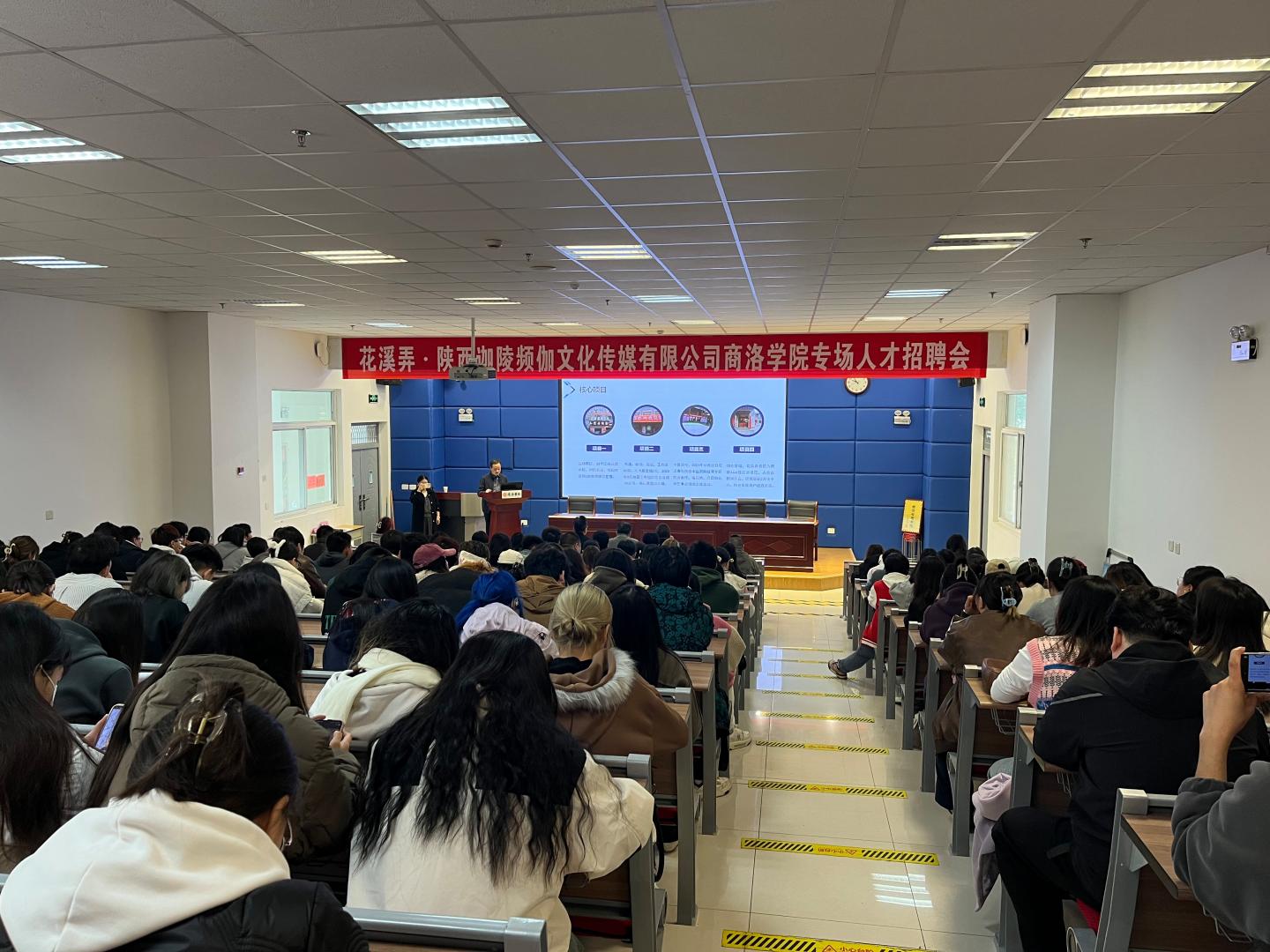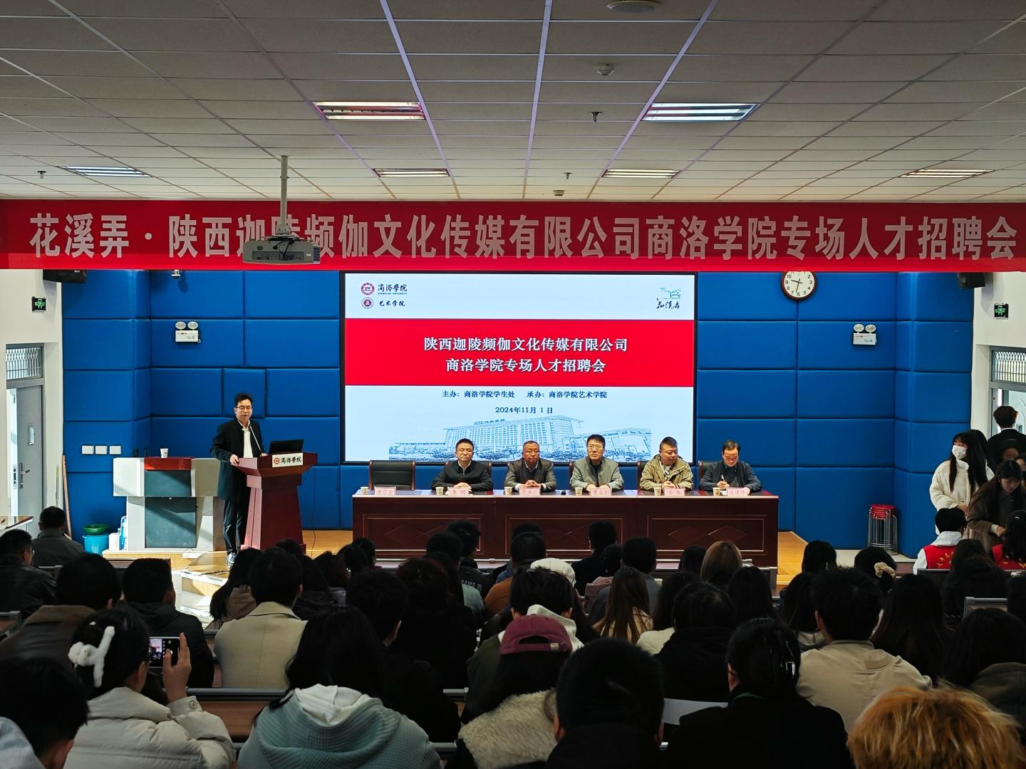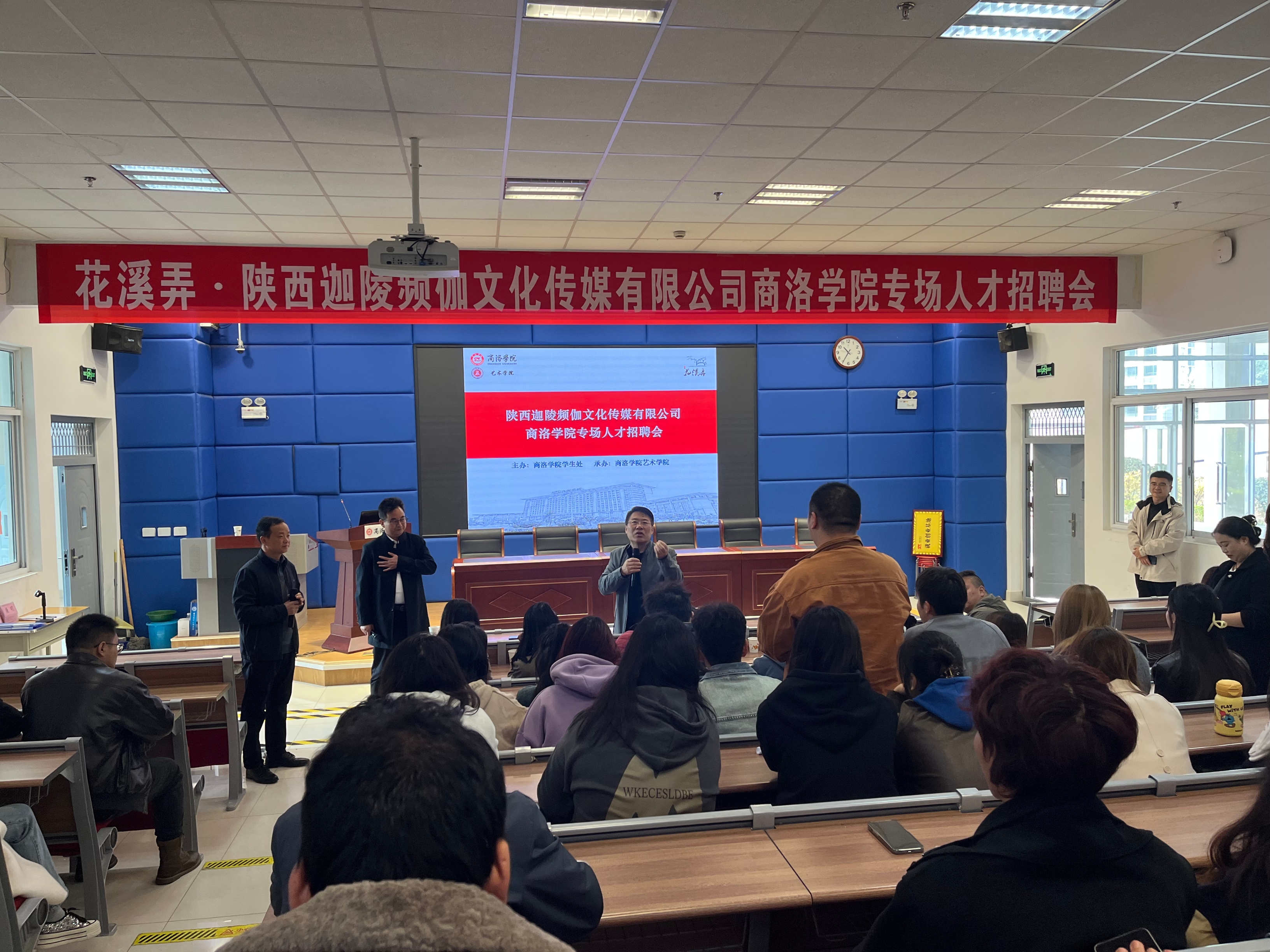 宣讲环节,陕西迦陵频伽文化传媒有限公司行政人事总监潘建锋介绍了公司的发展历程、业务范围、招聘岗位、薪资范围等情况。
