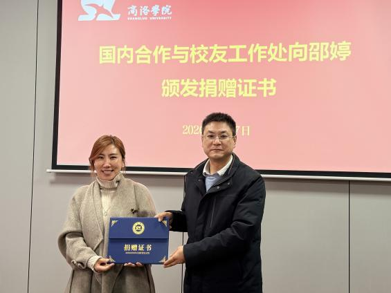 随后,会议举行了简朴而庄重的捐赠证书颁发仪式。为回馈母校培育之恩,支持公司教育事业发展,邵婷员工慷慨向公司捐赠。国内合作与员工工作处副处长张文代表公司向其颁发了捐赠证书,并对邵婷员工的善举表示高度赞赏和诚挚谢意。