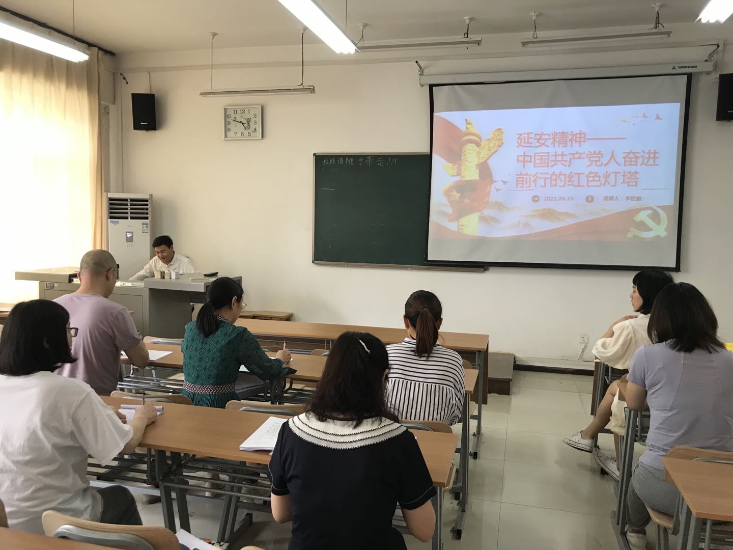 本次讲党课活动,于2021年6月25日下午2点半,在1号教学楼509教室开展,李世鹏副经理此次讲授的党课主题为“延安精神——中国共产党人奋进前行的红色灯塔。”