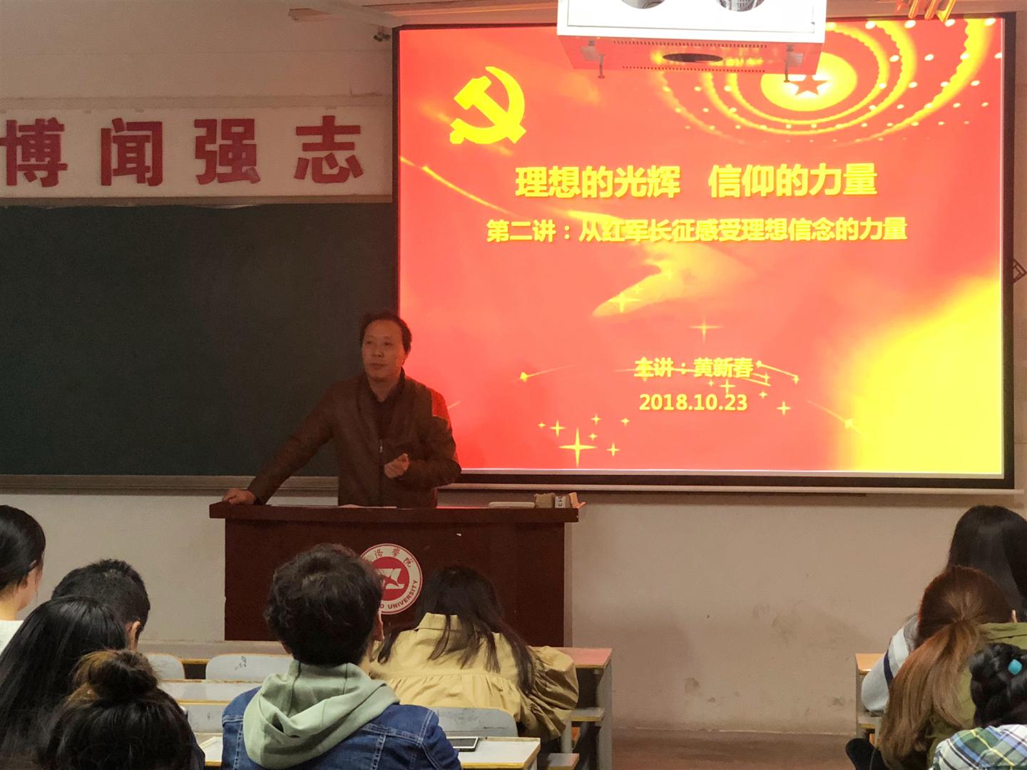 10月23日晚7:30,公司党总支书记黄新春为全体员工党员和发展对象讲授了“理想的光辉 信仰的力量”系列党课第二讲:从红军长征感受理想信念的力量,员工第一、二、三党支部所有在校支部书记、支部委员、支部党员及发展对象参加了此次党课。