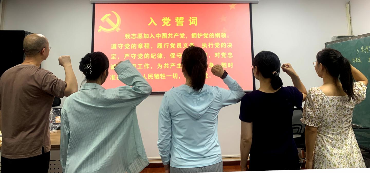 首先,全体党员重温入党誓词,表达不忘初心、继续前行的坚定信念,支部党员集体同过“政治生日”,并通过座谈交流,回顾各自的入党初心,一起感受共产党人的使命担当。