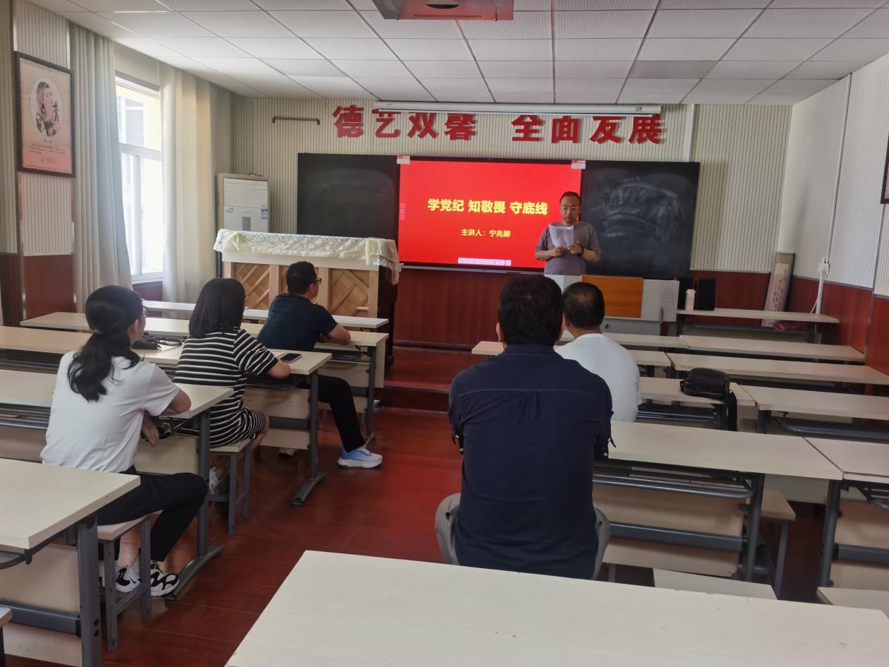 最后,支部书记宁兆卿同志围绕党纪学习教育相关内容,结合个人学习体悟和工作实际,为全体党员上了一堂名为“学党纪、守党规、争做合格党员教师”主题的党课。
