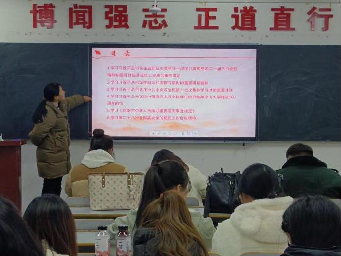 文化强国建设专题学习环节,党员同志们积极响应,立志提升文化素养,为文化繁荣出力,并围绕《习近平给中国海洋大学全体师生的回信》、《习近平致中山大学建校100周年的贺信》等相关内容,热议教育强国目标,思考个人在教育强国中的使命担当。