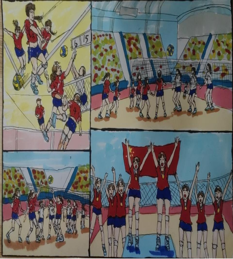 漫画三: 传承女排精神,砥砺艰苦奋斗