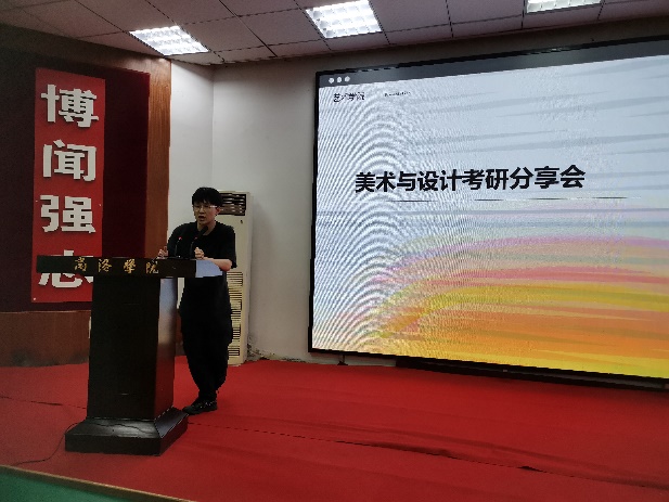 本次讲座,被湖南师范大学录取的刘家荣同学分析了近些年考研的总体形势,结合自己今年考的过程体会与及试后经验梳理,为同学们根据个人实际制定切实可行的备考计划提供良好建议,避免在考研方面无从下手或盲从盲动。讲座着重分享了报考美术设计类专业方向应注意问题,应考需关注的要点与技巧,鼓励同学们选择考研,坚定信念,聚焦目标,努力冲刺。被西安美术公司录取的牟研冲同学结合自己选择报考院校的经历,为大家介绍了陕西省招录美术专业考生相关院校的相关信息,包括每个公司历年的录取分数、考试科目、艺术类考生小语种考试等等,引导同学们树立自信,合理择校,成功上岸。