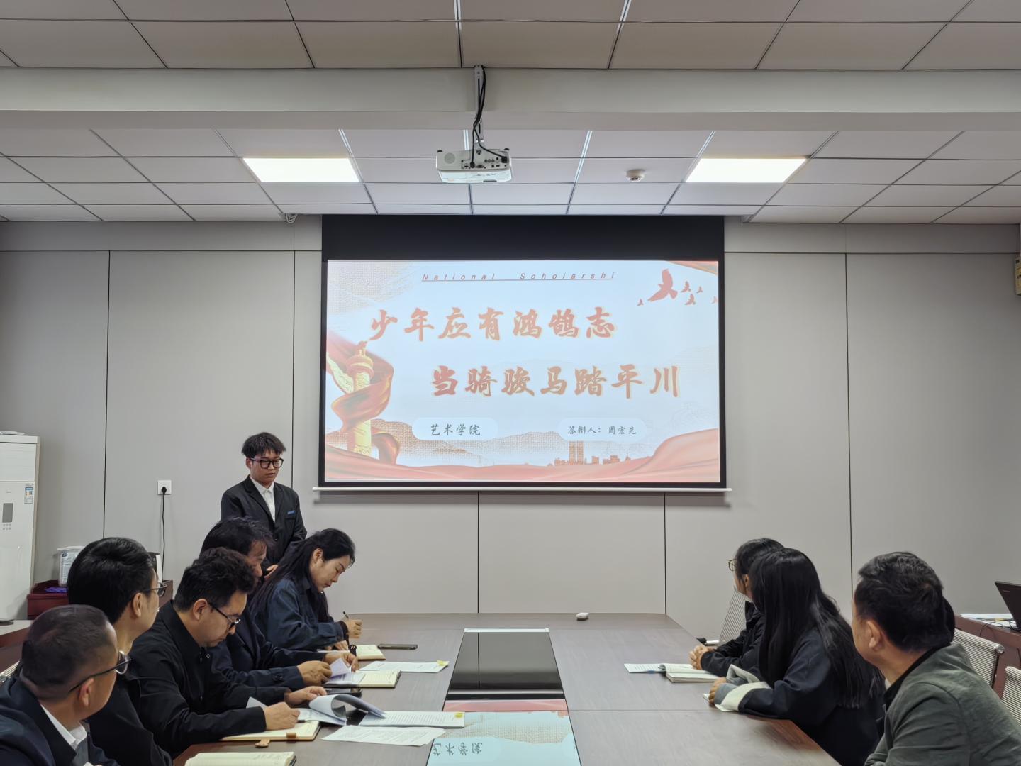 会议本着“公开、公平、公正、择优”的原则,对前期个人申请、资格审核等环节进入最终答辩评审阶段的3名优秀候选人进行公开评审。答辩环节音乐2432班甄慕晴、美术2402班周宏先、音乐2401班乔丽娜三位同学分别从思想表现、学业成绩、社会实践、科技创新、文体活动、志愿服务等方面进行了五分钟的个人陈述,全面展示了各自在校期间的综合素质与突出表现。