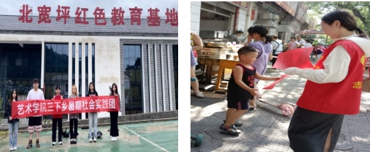 “美育浸润行动”和“建设美丽家园”两支社会暑期实践团队分别赴夜村镇、牛武镇开展专题活动。“美育浸润行动”调研团队深入了解当下村镇地域文化资源开发利用与美丽乡村建设现实需要,充分彰显美术学专业优势,深层次挖掘与展示美丽中国建设中大美育潜在的社会功能,积极与当地有关部门共同探讨用美育社会实践具体策略提增新时代乡村文化的吸引力、竞争力,为新农村旅游开发和农产品包装设计应用提供审美创意,助力现代乡村经济复合创收和多元发展。“建设美丽家园”社会实践团从积极保护和有效利用自然生态、适时改善当地居民生存环境还潜在的实际问题为切入,大力宣传和带动村镇居民共同开展环境卫生治理。通过改善和优化环境卫生、不断增强老百姓自觉创造环境美、生活美的责任担当,引导村民树立公民意识、强化环保意识,促进村民用实际行动提高生活质量提升幸福指数,在奋进现代化建设的征途中踔厉建设美丽整洁的崭新家园。两支团队用实际行动响应国家建设美丽中国、建设美丽乡村的时代号召,为美丽乡村建设更好渲染和塑造自然美、社会美,融入艺术美,注入青春力量。
