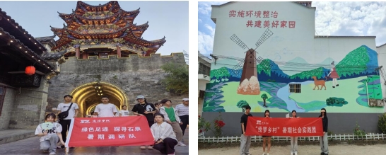 “绿色足迹,探寻石泉”团队深入石泉县各旅游景区,全面了解石泉县振兴村镇旅游业背景下的乡村发展现状,借助抖音、微博、公众号等新媒体手段,全方位多视域展示石泉的陕南自然景观与人文特色,吸引更多外地游客前来旅行打卡,推动石泉县旅游业的深度拓展。“绘梦乡村”团队充分发挥美术学专业的特色功能,深挖当地历史资源与文化脉络,紧贴村民对美好生活的向往与追求,为吴庄村彩绘大美景观,绘制“永远跟党走”、“实施环境整治,共建美好家园”、“增加农民收入,改善农村面貌”四面主题文化景观墙,用艺术墙绘邂逅美丽乡村,让美丽乡村建设凸显时代活力、散发幸福气息。从“线下+线上”宣传地方文旅到再现一处美丽乡村新景观,艺术学子在生动火热的社会实践中用专业所学为家乡经济发展和美丽乡村建设增添了浓墨重彩的一笔。