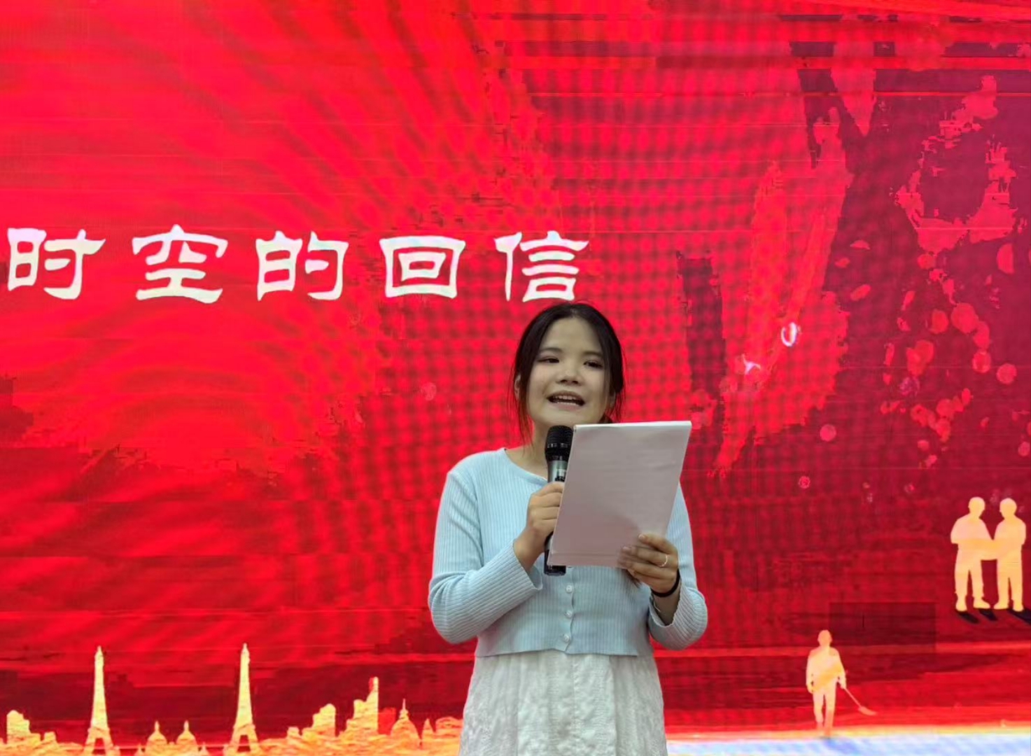 在总结讲话环节,校团委书记王姗老师充分肯定了本次示范性主题团日“诵读+情景剧”的沉浸式教育效果,并对全体团员青年提出三点希望:一是做红色基因的传承者。从家书中读懂“小我”与“大我”的选择,把个人理想融入国家发展;二是做知行合一的践行者。将感动转化为行动,在志愿服务、科技创新中展现青年担当;三是做新时代的奋斗者。牢记习近平总书记对青年的嘱托,以“强国有我”的姿态跑好历史接力棒。