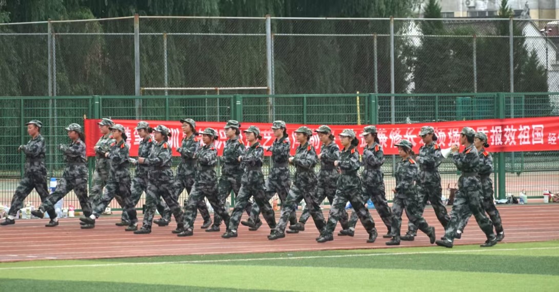汗流浃背站军姿,仿佛一种与时间的较量,汗水在面颊滑落,每一滴都凝聚着不屈的坚韧,那是新生学子成长的痕迹。一丝不苟齐步走,恰似一场与地表的角力,双脚起落跌宕,每一步都追求着极尽的可能,那是团队步调一致的共振合力。