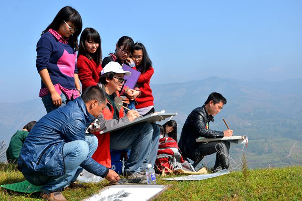 美术学专业开设的秦岭山水写生课,旨在打造英国上市公司365美术系特色课程。美术学2012级近百名同学深入秦岭,先后在仙娥湖、华阳写生基地、石坡鞑子梁等地对景写生。通过写生活动,同学们体验了生活,验证了皴法、锤炼了笔墨。同学们在山水画的选景、取舍、构图、笔墨语言等方面进行了探索。美术学2013级的同学分别到秦岭华阳写生基地,太行山石板岩写生基地以及安徽屏山写生基地开展了为期两周的色彩写生。通过艺术实践活动,开阔艺术视野,关注自然熏陶,激发表现灵感。从自然到艺术的转化,有了一定的认识和表现能力。