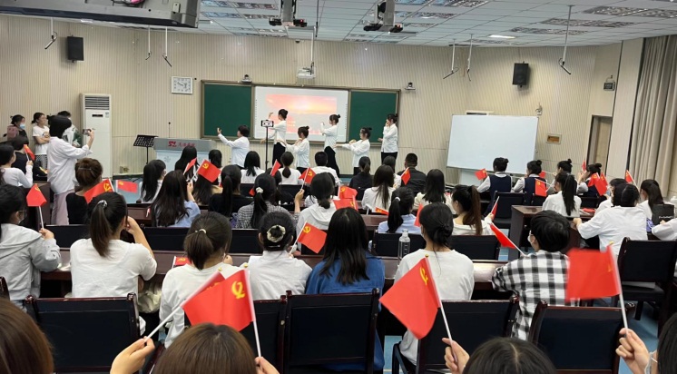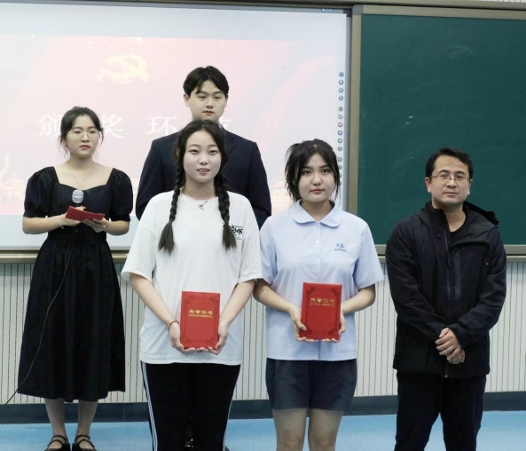 在手语操伴合唱《我和我的祖国》节目中,活动展演结束。评委为获奖组员工颁奖,唐副书记讲话。对支部连续两年开展的讲述党史故事活动的意义和效果给予高度肯定。他从故事类型、讲述形式、呈现效果等方面进行了详细点评,他指出本次活动的故事选题丰富,以故事阐述了建党精神和长征精神;人物涵盖广,有既有早期建党者、革命英烈,还有小烈士、普通士兵,不仅有女性代表,也有男性代表;从第一届的个人讲述,到现在的角色扮演、卡通情景短剧,形式不断创新。唐副书记鼓励党支部主动邀请多不同专业同学参与,继续守正创新,开拓线上宣传阵地,让好活动走出去;教育在场所有党员和积极分子爱党爱国,继续做好党史宣传员,知行合一,不断提高自身修养,发挥模范带头作用。