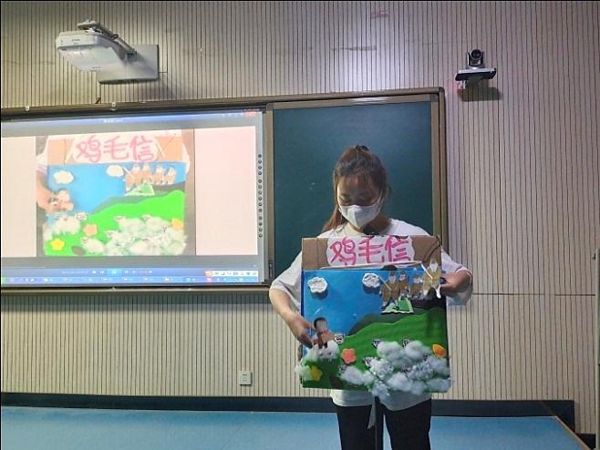 可歌可泣的故事还在继续,《少年英雄李爱民》和《一封鸡毛信》讲述了两位小英雄,在抗日战争中机智勇敢,甚至献出生命的故事。这两个故事以情景短剧和手工卡通立体书的形式展示了支部员工发挥学前教育专业优势,向小朋友宣传党史故事的独特视角,这也是支部讲述党史故事活动结合员工专业特长打造支部特色精品的一次成功尝试。