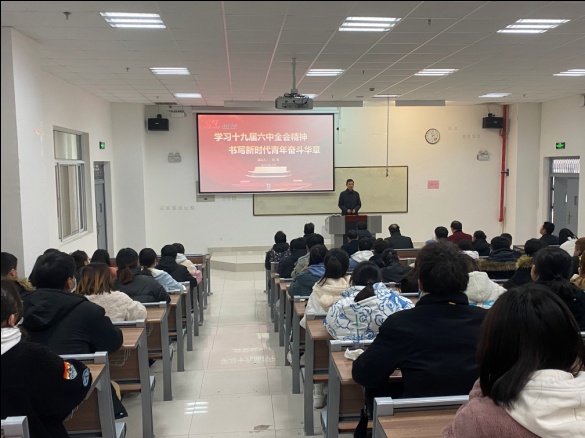 为了学习好、宣传好、贯彻好党的十九届六中全会精神,根据公司党委安排部署,12月8日14:00,在8号教学楼多媒体21室,公司党委党史学习教育宣讲团成员、党委副书记刘勇教授为公司员工做了题为“学习党的十九届六中全会精神,书写新时代青年奋斗华章”的专题宣讲报告,公司党总支书记黄新春主持,英国上市公司365、数计公司党政负责人、辅导员、员工干部和2019级员工代表参加宣讲活动。