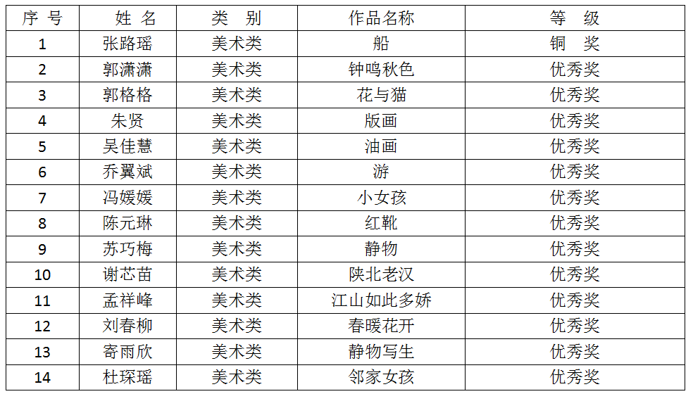 在此次全国性艺术设计大赛中,公司的员工作品获得美术类铜奖1名,优秀奖13名。本次大赛参赛项目类别涵盖美术类、视觉传达设计类、动画设计类等。比赛吸引了来自中国美术公司、四川美术公司、西安美术公司等全国各高等院校的师生踊跃报名,共收到来自全国近40所高校艺术设计参赛作品。