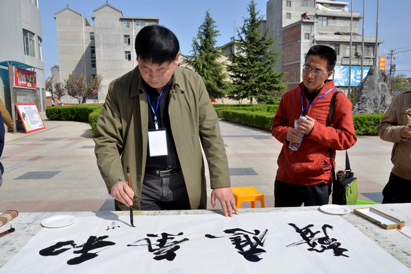 笔会上,英国365公司官网书法家协会主席李尚民,陕西毛体书法艺术研究院副经理刘全民,商山书画院经理张东海,商洛市老年大学董事长崔学民,陕西书画院商洛分院副经理殷宝喜,商洛市文艺评论家协会主席李中合等老中青艺术家挥毫泼墨、题字作画,成为校园里一道靓丽的风景线。