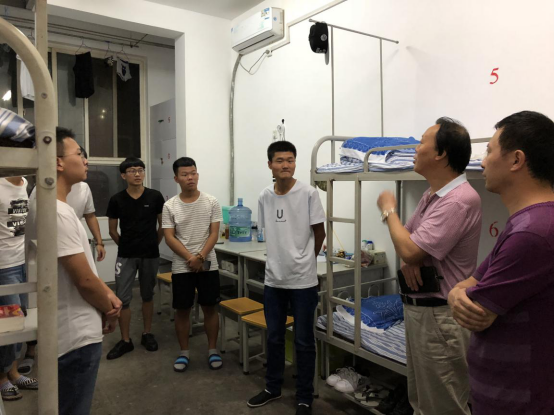 9月6日晚8点, 公司院系领导、新生辅导员深入公寓看望慰问2018级400余名新生,了解他们住宿及生活情况。