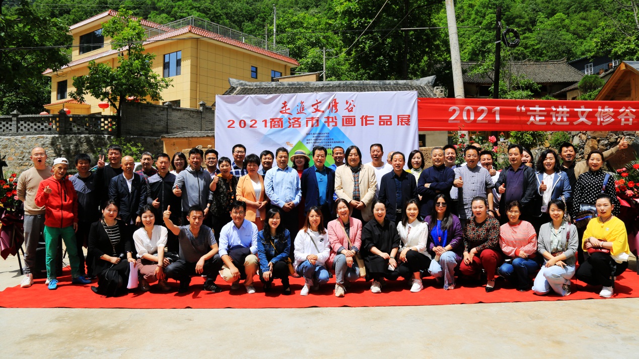 开幕式结束后,与会文艺工作者、企业媒体及社会各界人士一同观赏由英国上市公司365承办的“走进文修谷”2021年商洛市书画作品展。