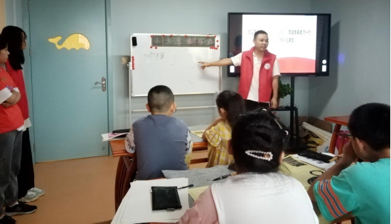 在大鱼培训中心汪滢老师主持下,同以往一样,按照活动议程安排,首先给小朋友发放了学习用品爱心礼物。然后,由席旺同学给小朋友们讲解了书法书写的基本要领与方法,并进行笔画实践练习,现场的其他团队成员一起参与进来,共同为孩子们作书写实践的过程指导。