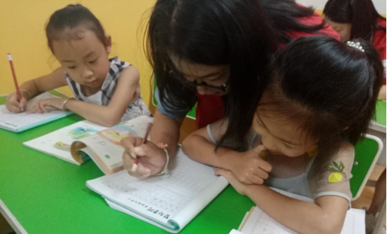 在教学过程中,画圃团队成员从基本笔画与笔法入手,围绕汉字结构,讲解汉字书写规律和书写方法,针对练字当中难字不易写的字,采取先示范后引导小朋友书写,通过课堂示范给他们留下了深刻的印象。在团队的耐心指导下,小朋友们学的轻松,并对练字产生了浓厚的兴趣,由于时间原因,本次活动只注重课堂辅导练习,着重从培养小朋友的基本书写能力和良好的书写习惯进行指导,帮助他们在独立书写和培养良好书写习惯方面有一定的提高。