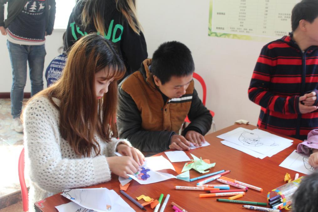 经过手把手的现场教授、指导,残障人士们都完成了各自的作品,将自己的“初心”绘制在纸上,大家互相传阅,用“心”交流。服务中心的老师也对本次活动进行了点评,感谢同学们用暖暖的爱心和独特娴熟的专业技能为残障人士带来了欢乐,唤醒了他们每个人对初心的追求和向往。最后,志愿者一行与残障人士一道用乐曲与舞蹈为本次志愿活动画上了圆满的句号。