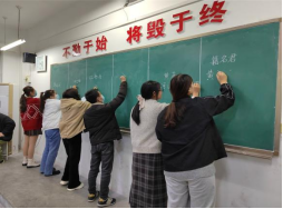 粉笔字现场满是“哒哒哒”的声音,一笔一划,伴随着轻轻飘落的粉笔灰,横竖撇捺在笔尖稳稳落下。比赛现场,黄书记在点评之余即兴书写了粉笔字,引发了师生对教师职业的板书能力水平及中国书法艺术表现的深入思考与探讨。