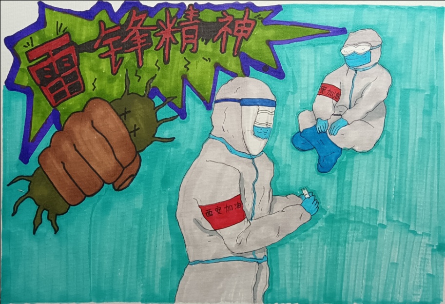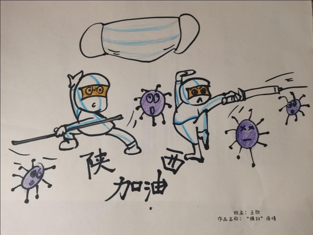 疫情无情人有情,携笔抗疫显真情。同学们在校院疫情封控期间,在线上学习的课余时间,不忘用手中的画笔,为陕西抗疫摇旗呐喊、鼓劲加油!同学们用漫画语言普及防疫知识、宣传防疫政策、鼓舞抗疫斗志......汇聚万众一心抗击疫情的强大精神合力,为夺取我省此次抗疫的胜利,注入了满满的正能量;同学们用漫画作品致敬战斗在防疫一线的广大医护工作者、各级志愿者和有关工作人员,鼓舞群众抗疫士气;同学们画笔描绘出我们共筑的坚守、我们共有的决心、我们共同的希望!坚信西安,定会长安!!