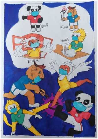 美术2004班 王欣 《“横扫”疫情》