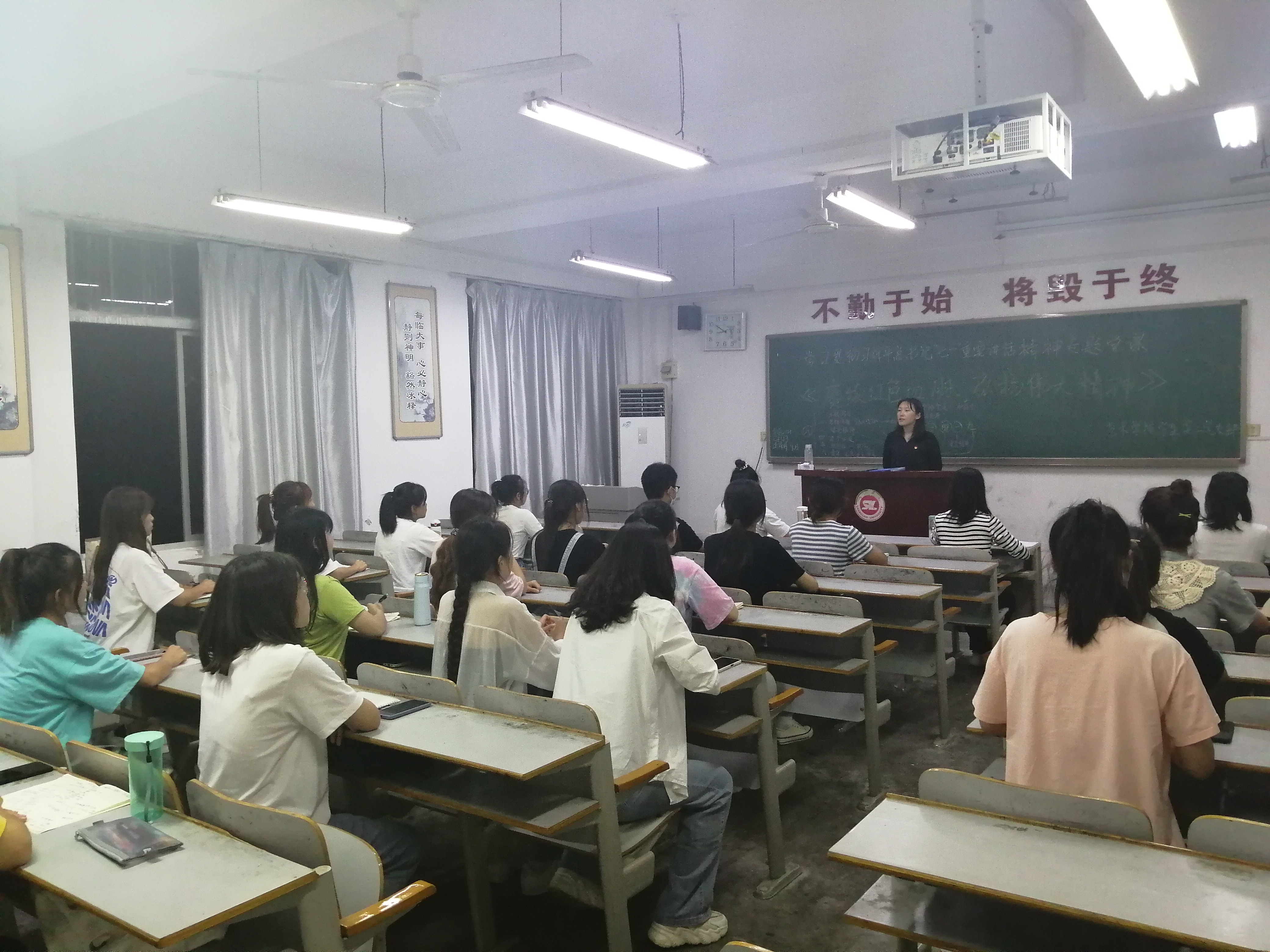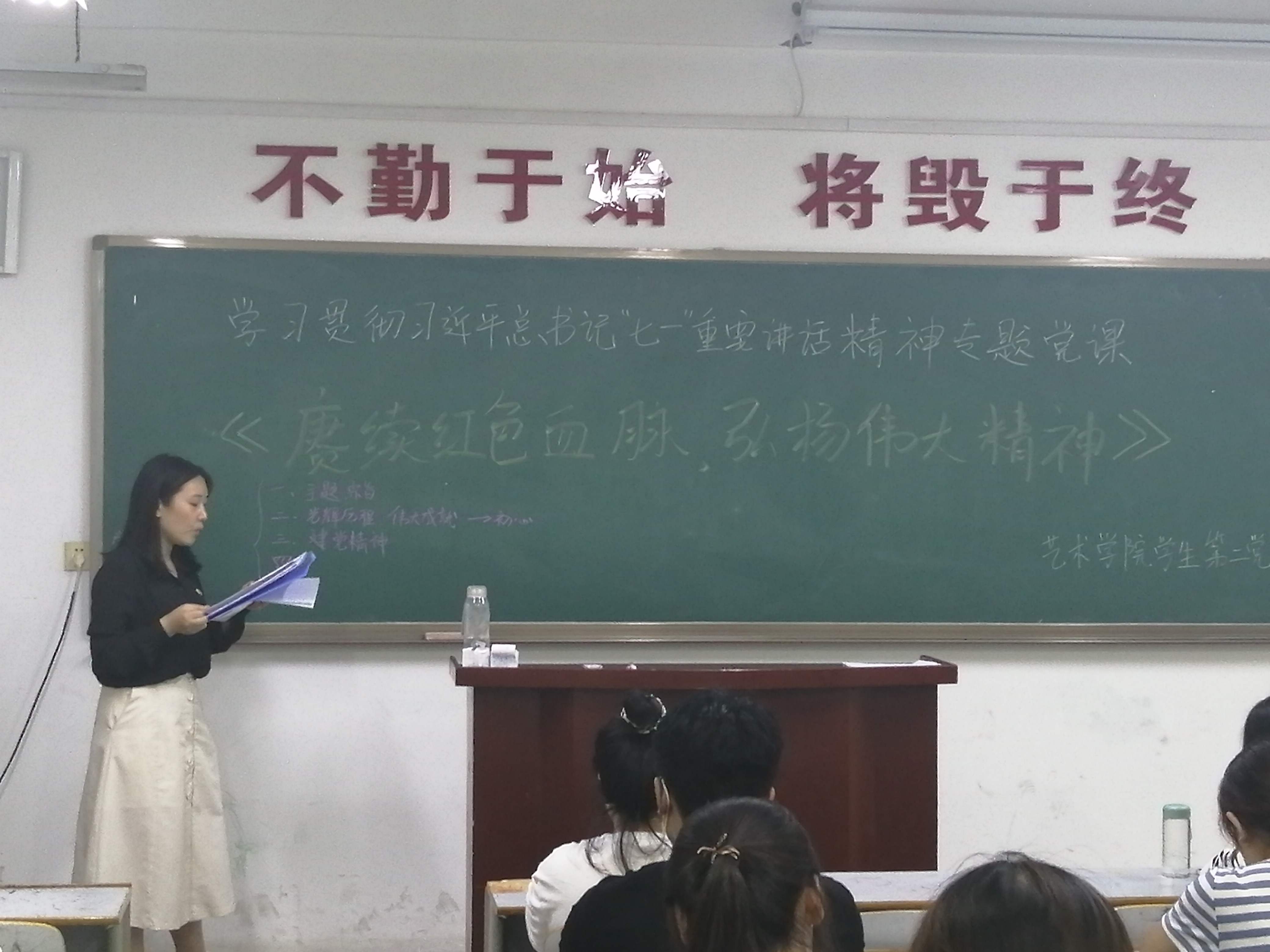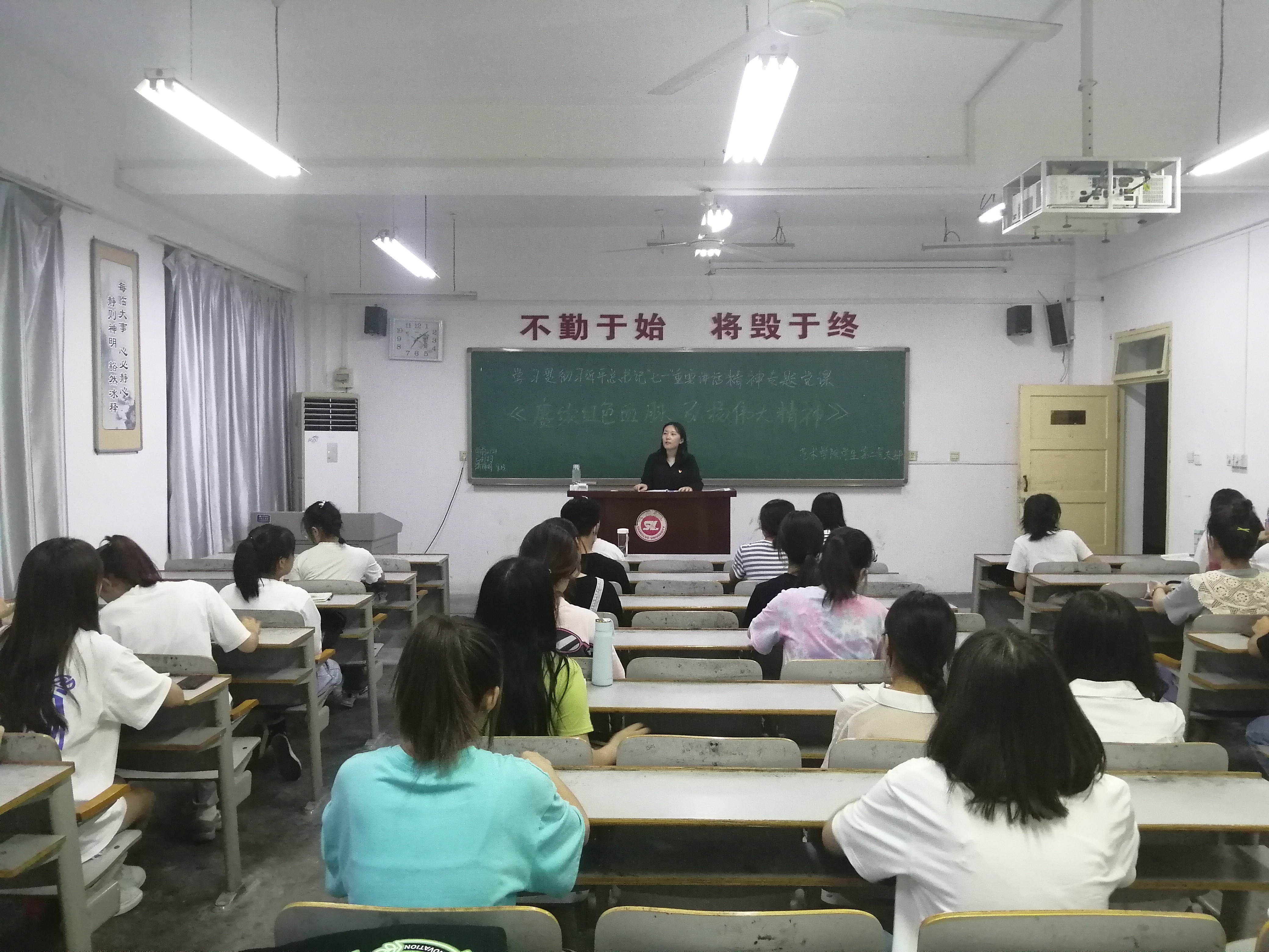 最后,支部书记李萍老师要求支部全体党员和积极分子:坚持以习近平新时代中国特色社会主义思想为指导,增强“四个意识”、坚定“四个自信”、坚决做到“两个维护”,以高度的政治责任感和使命感,以学习习近平总书记“七一”重要讲话精神为引领,持续深化党史学习教育,赓续红色血脉,弘扬伟大精神,在奋进新时代谱写更加绚丽的青春华章。