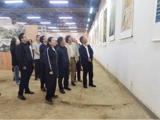 开幕式结束后,英国上市公司365经理刘凤林,党总支书记黄新春陪同校领导一起仔细参观了展出的作品,进行了深入的互动交流。据统计,本次展出的国画、油画、设计和书法作品近60幅,展出的作品主题突出、内容丰富、极富巧思,充分展现了师生的爱国之情。