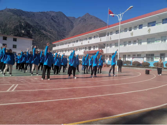 在镇安回龙中学观摩实习生的课间韵律操排演