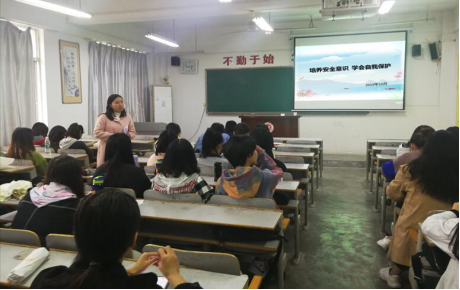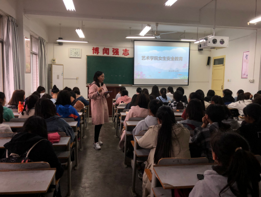 为了增强女老员工的安全防范意识,提高女生的自我保护能力,促进女生的身心健康发展,培养女生形成“自尊、自爱、自强、自信”良好的身心品行,2019年10月22日,美术17级和学前19级本科全体女生分别在1号楼605教室和604教室举行了“培养安全意识 学会自我保护”主题教育班会,辅导员刘露老师主持。