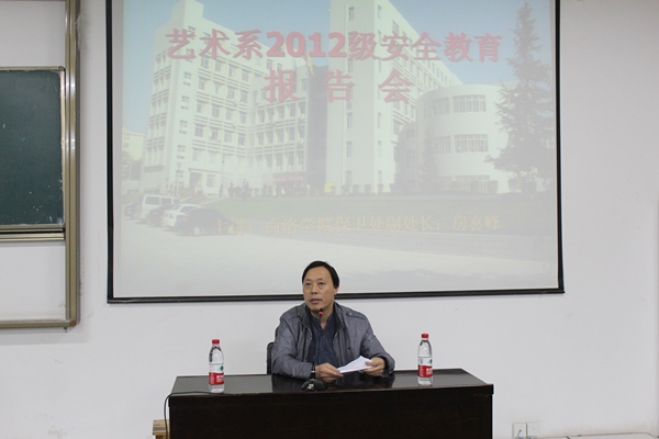 为了进一步加强我系员工安全教育,提高同学们的安全防范意识和法制观念,有效预防安全事故的发生。5月29日晚,在院报告厅三,由公司保卫处副处长房喜峰老师应邀为艺术系2012级300多名员工作安全教育报告,报告会由艺术系党总支副书记黄新春老师主持。