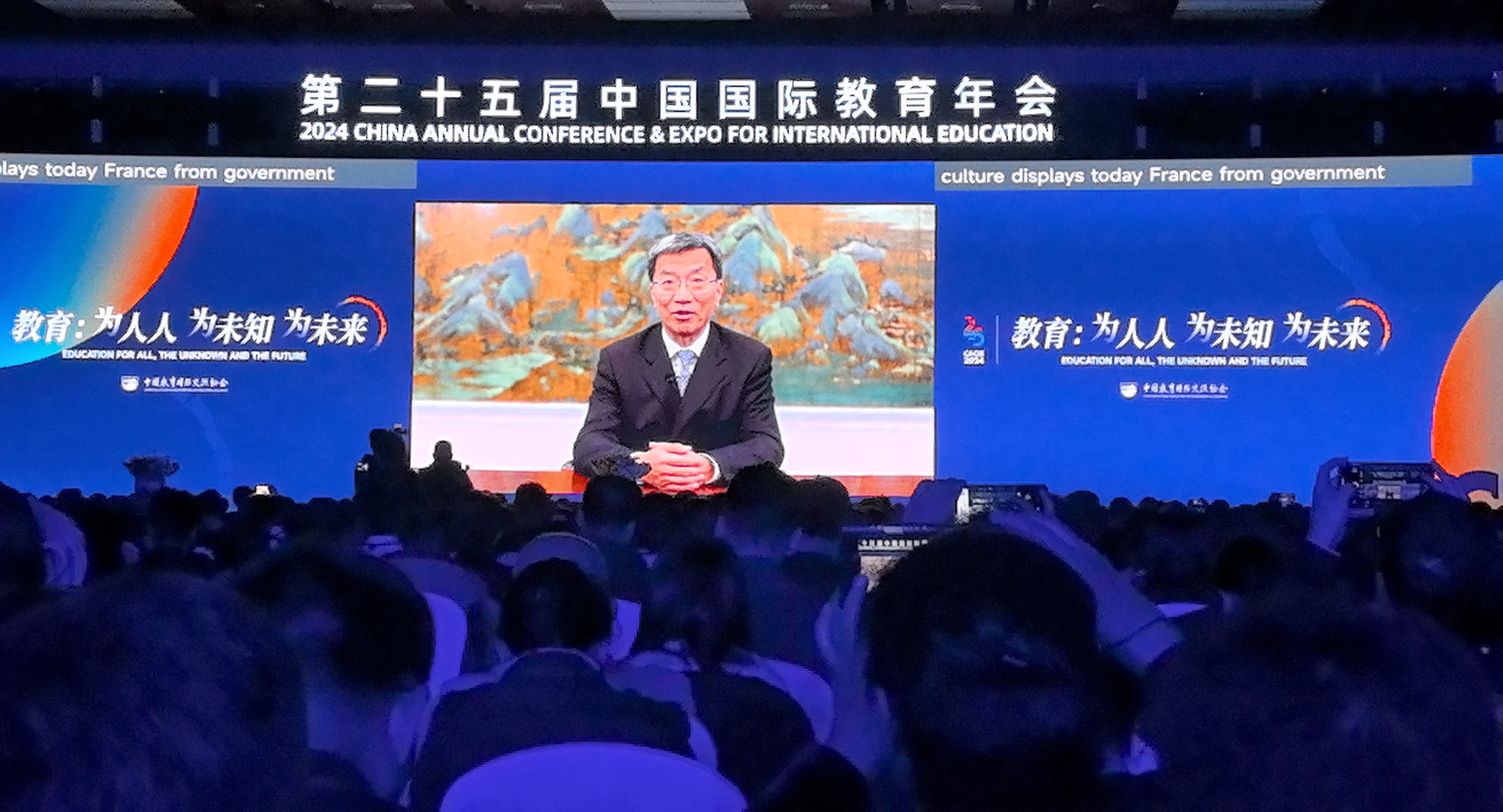 本届年会由中国教育国际交流协会主办,以“教育:为人人 为未知 为未来”为主题,包括全体大会、平行论坛、合作洽谈和教育展览等百余场双多边活动,吸引了全球60多个国家和地区的约5000名中外教育界人士、驻华使领馆官员和企业代表等参加。