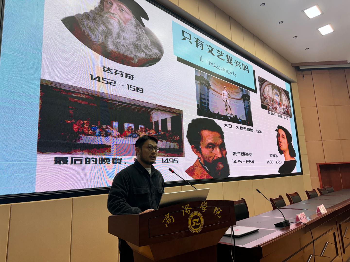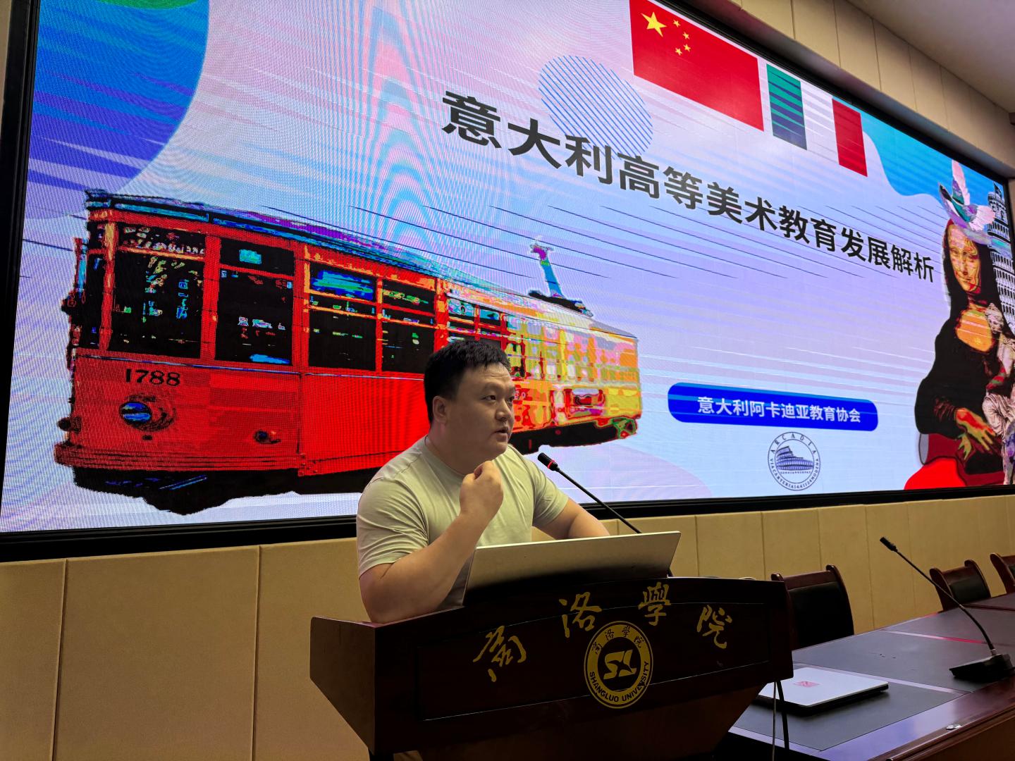 交流会的核心内容围绕意大利高等教育及美术文化展开。黄一鸣老师做了题为“意大利艺术与文化”的精彩分享,通过典型案例分享艺术脉络,引领在场师生领略了意大利深厚的艺术底蕴与文化魅力。紧接着,白新江老师以“意大利高等美术教育发展解析”为题,系统介绍了意大利美术的历史渊源、高等院校的教育体系、教学特色与发展趋势,为师生提供了宝贵的国际前沿视角和政策分享。