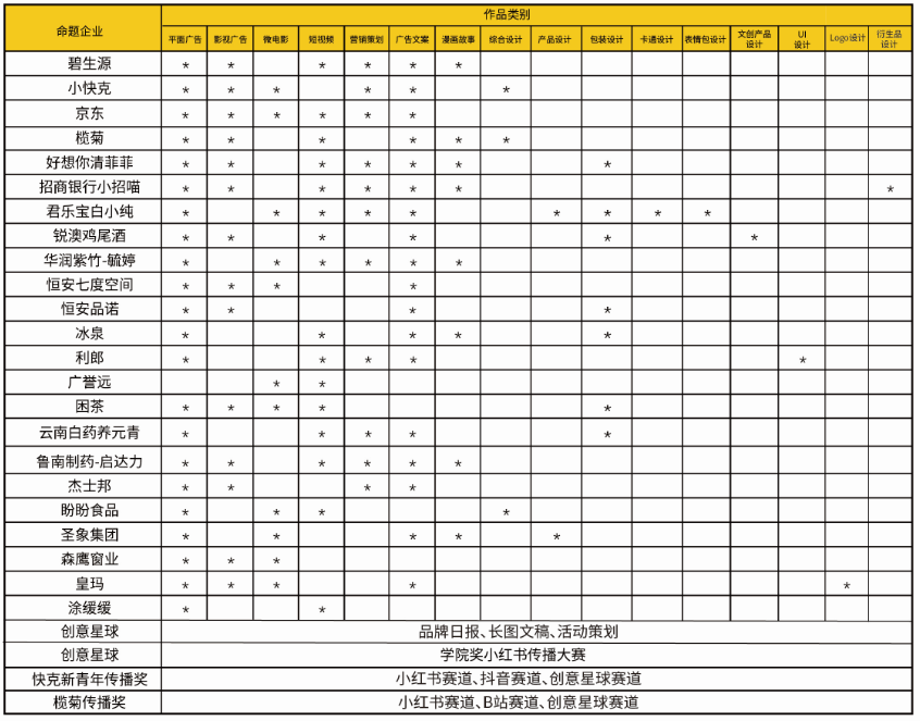 参赛作品按照组委会指定广告主提供的命题策略单进行创作。命题策略单及命题企业素材文件详见公司奖官方网站:xyj.5iidea.com;上传作品说明网址:http://www.5iidea.com/contents/32439了解详细信息请登录官方网站或关注新浪微博@公司奖