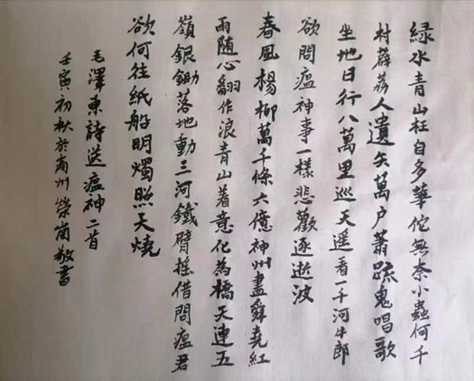 穆荣岗《毛泽东诗送瘟神二首》书法